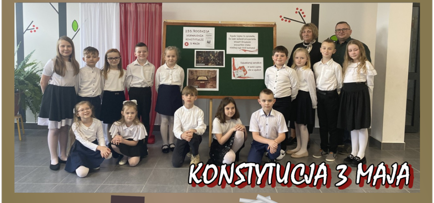 Tegoroczną Akademię z okazji 233. Rocznicy Uchwalenia Konstytucji 3 Maja przygotowała klasa 2 pod kierunkiem p. Bożeny Kisiel oraz p. Piotra Kmiecia. Uczniowie wierszem i fantastycznie wykonanym śpiewem wprowadzili swoich młodszych i starszych kolegów i koleżanki w okoliczności uchwalenia tego bardzo doniosłego dokumentu, jednego z najważniejszych w naszej historii. Takie uroczystości mają za również zadanie kształtowanie postawy patriotycznej wśród najmłodszych, przywiązanie do naszej historii, tradycji, barw narodowych, aby w przyszłości mogli te wartości przekazywać kolejnym pokoleniom.