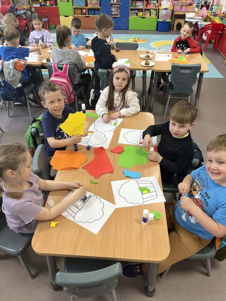 Po słodkiej degustacji przedszkolaki wykonały pracę plastyczną – kolorowe muffinki z papieru i waty, które stały się piękną pamiątką tego dnia.