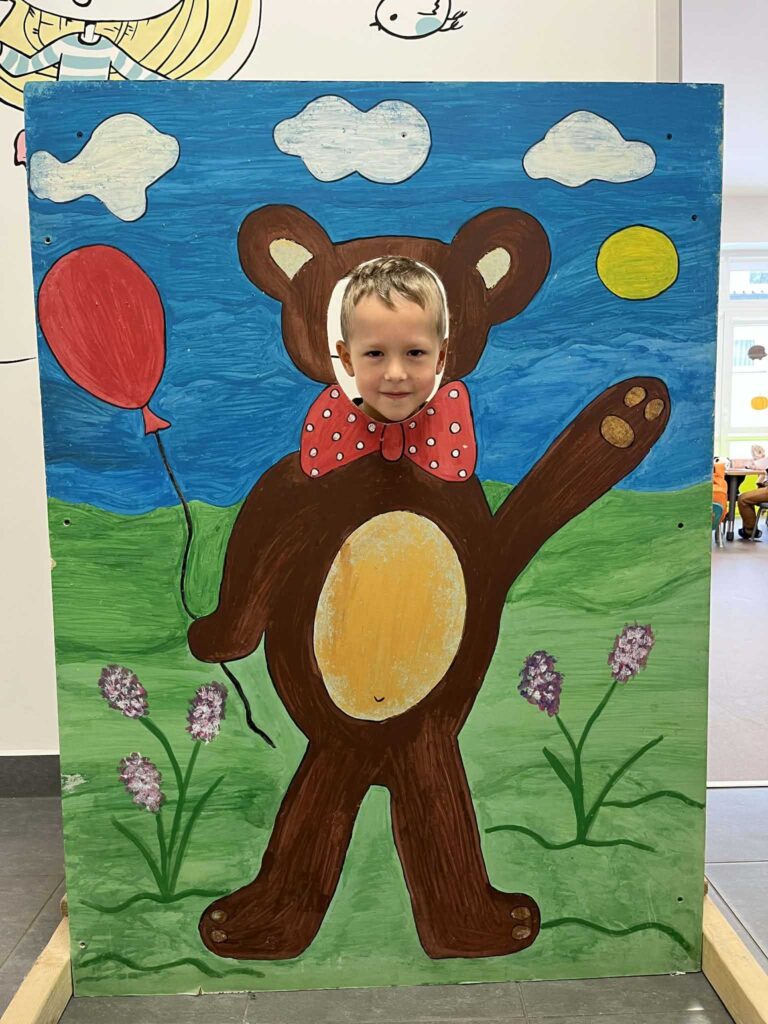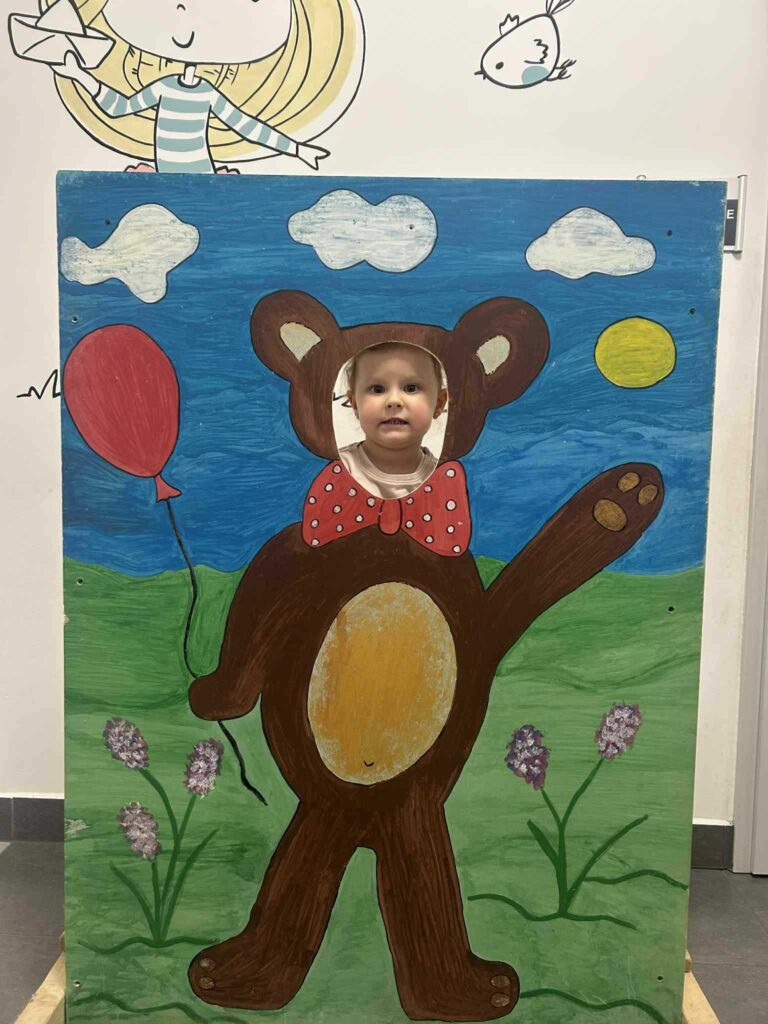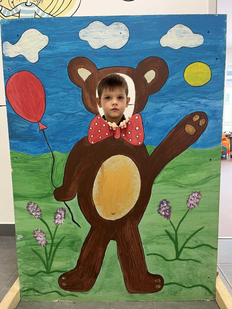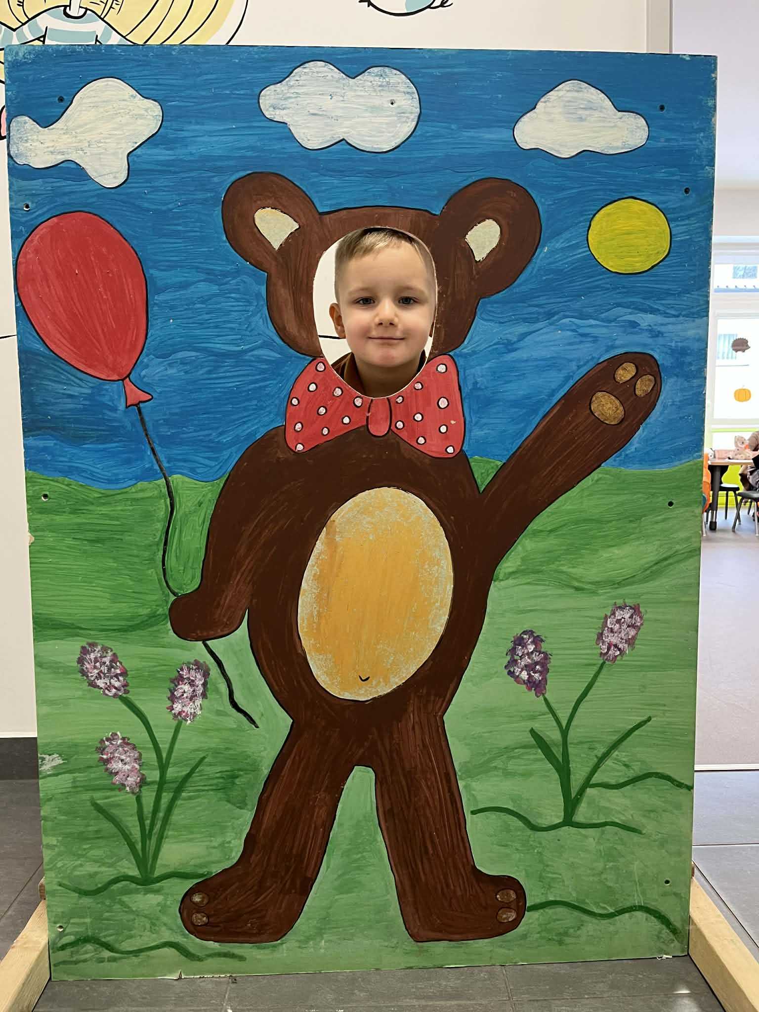 Nie zabrakło ulubionych aktywności ruchowych – przedszkolaki tańczyły z misiami, uczestniczyły w zabawach przy muzyce oraz w wesołej zabawie „Stary niedźwiedź mocno śpi”. Dzieci słuchały również opowiadania i bajek o misiach, w tym fragmentów o Kubusiu Puchatku, ucząc się uważnego słuchania i skupienia.