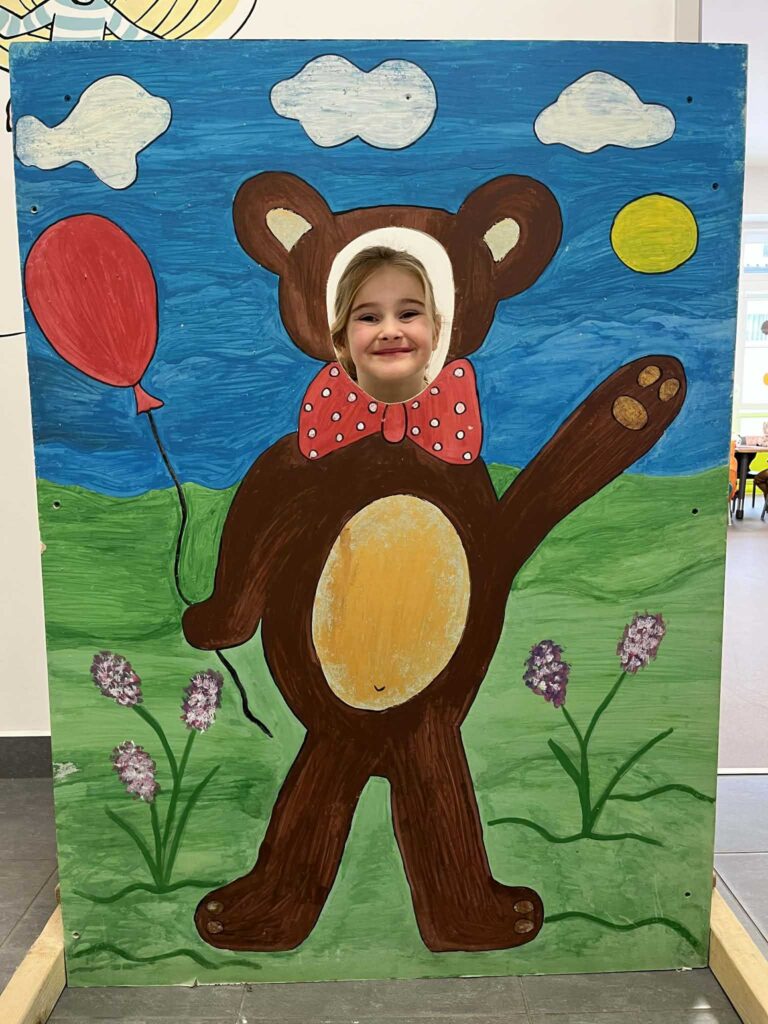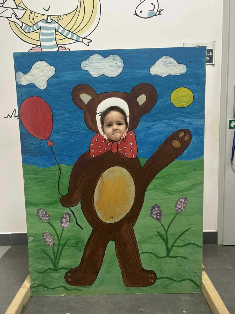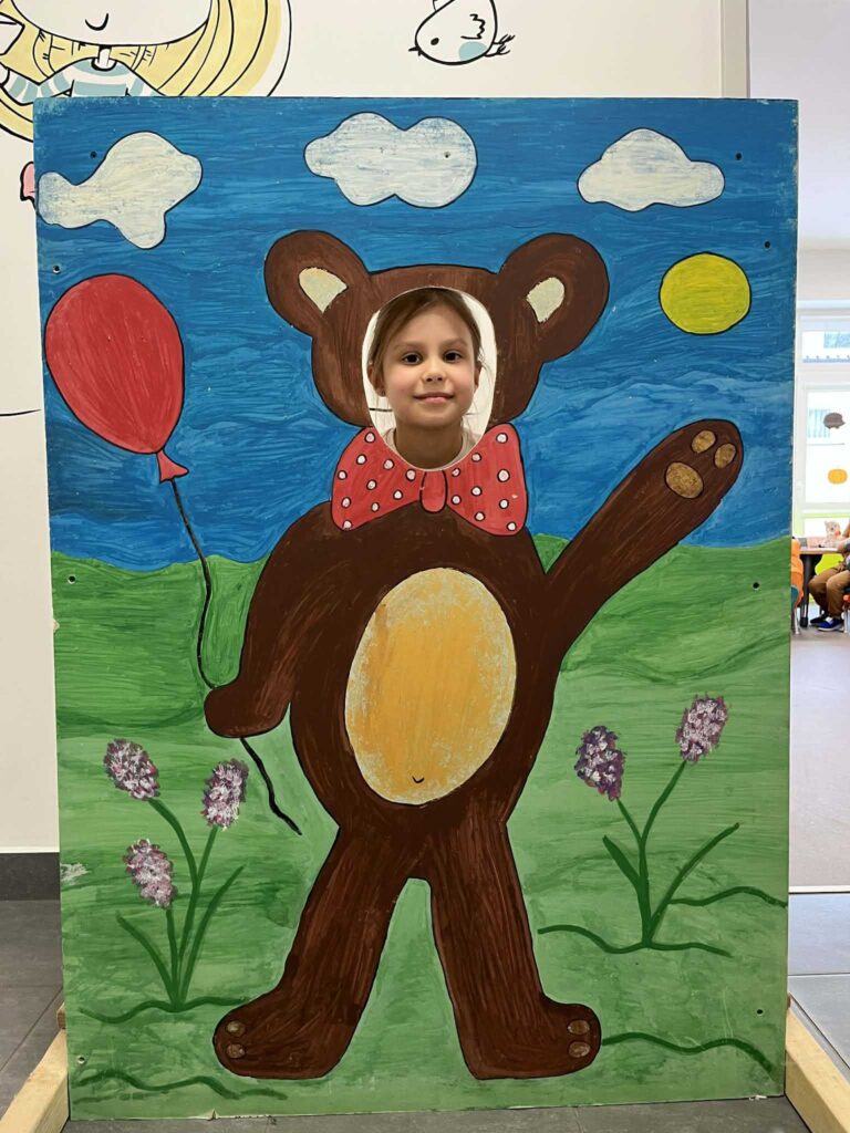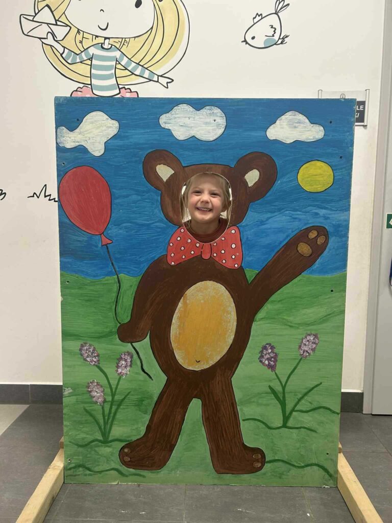 Nie zabrakło ulubionych aktywności ruchowych – przedszkolaki tańczyły z misiami, uczestniczyły w zabawach przy muzyce oraz w wesołej zabawie „Stary niedźwiedź mocno śpi”. Dzieci słuchały również opowiadania i bajek o misiach, w tym fragmentów o Kubusiu Puchatku, ucząc się uważnego słuchania i skupienia.