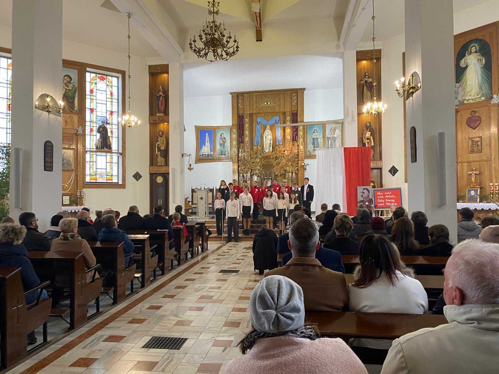Po nabożeństwie uczniowie ze Szkoły Podstawowej im. Marii Konopnickiej w Olchowej pod kierunkiem p. Elżbiety Czapki – nauczyciela języka polskiego oraz p. Pawła Paseli – nauczyciela muzyki, zaprezentowali program patriotyczny poświęcony odzyskaniu przez Polskę niepodległości.