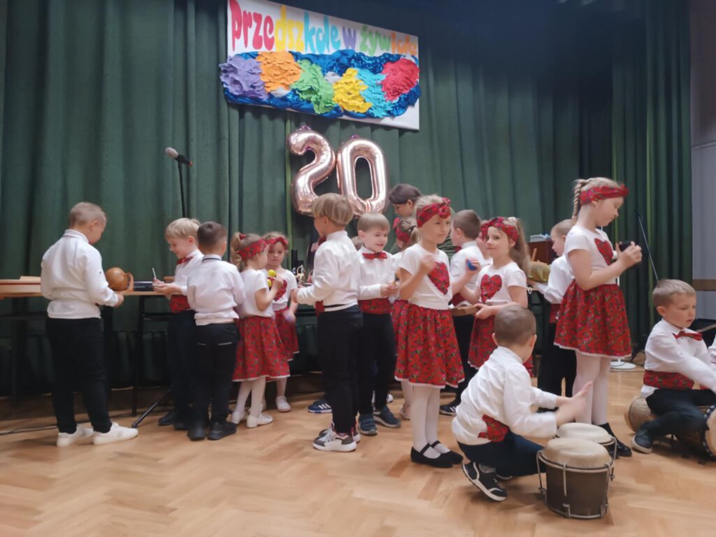 Z okazji 20-lecia przeglądu Gminny Ośrodek Kultury zorganizował warsztaty dla dzieci pt. „Źródła dźwięku”, które poprowadził Paweł Steczkowski z pomocą Lidii Biały. Przedszkolaki miały okazję poznać różne instrumenty, wspólnie tworzyć muzykę i eksperymentować z rytmem. Zajęcia te cieszyły się ogromnym zainteresowaniem i dostarczyły dzieciom wiele radości oraz inspiracji.