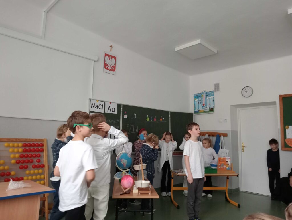 Po zakończeniu koleżanki i koledzy z innych klas i grup przedszkolnych mogli oglądać i używać do doświadczeń licznie zgromadzonych rekwizytów związanych z odkryciami i nauką.