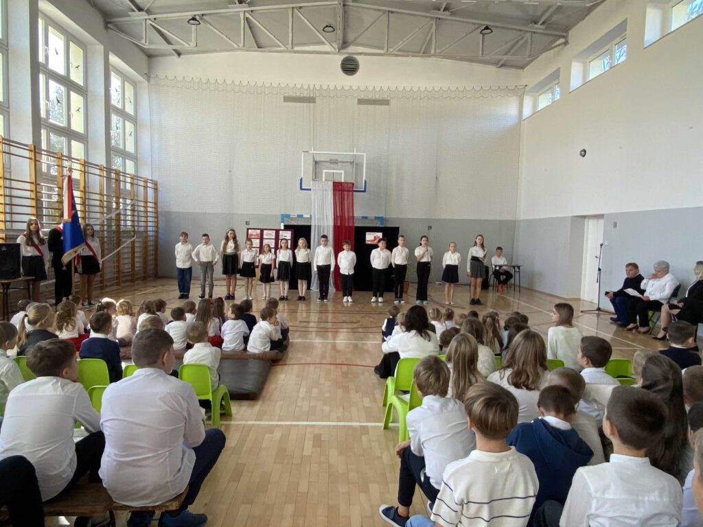 Uroczystość poprzedziło wspólne odśpiewanie „Mazurka Dąbrowskiego”, włączając się w ten sposób do ogólnopolskiej akcji MEN „Szkoła do hymnu 2025”.