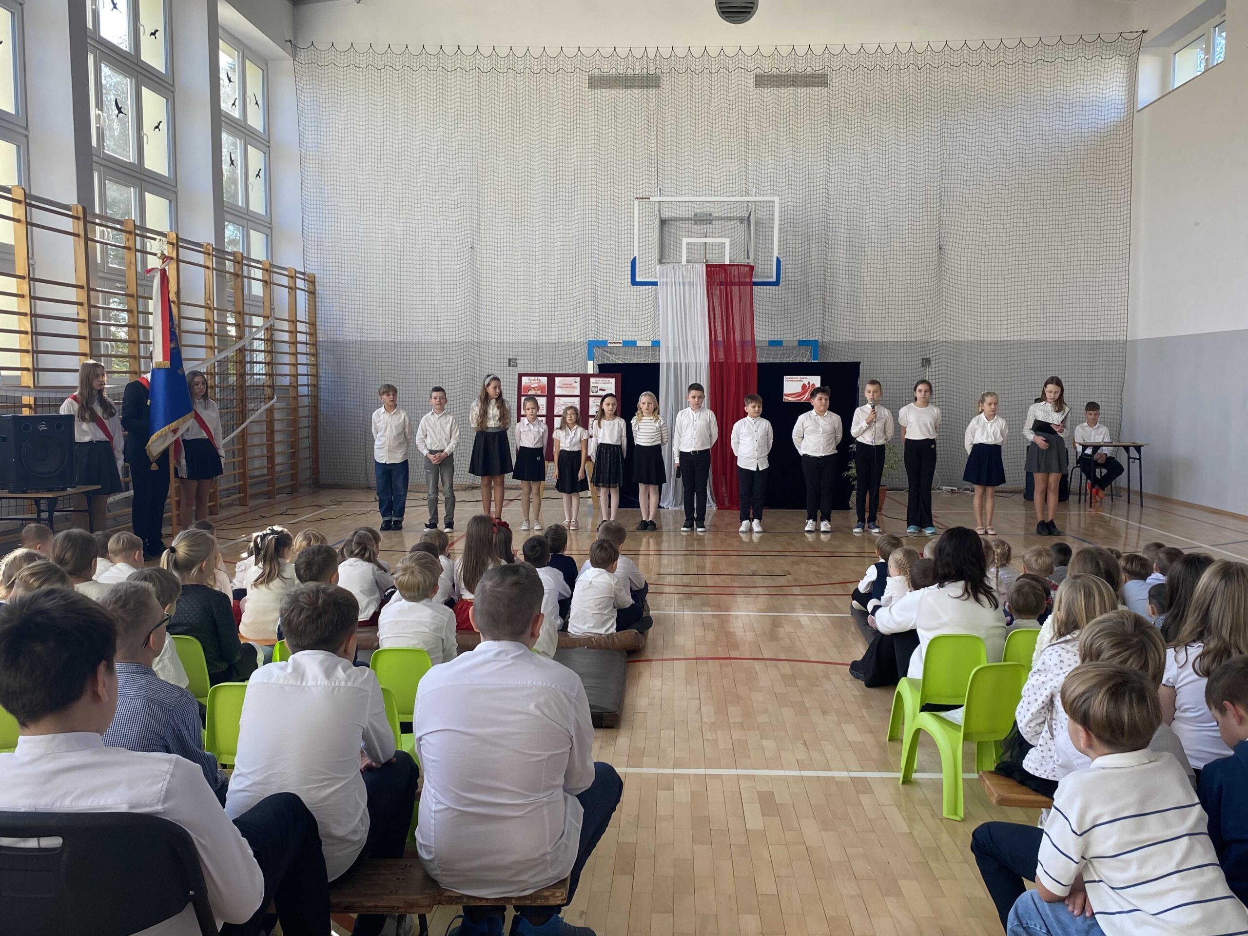 Uroczystość poprzedziło wspólne odśpiewanie „Mazurka Dąbrowskiego”, włączając się w ten sposób do ogólnopolskiej akcji MEN „Szkoła do hymnu 2025”.