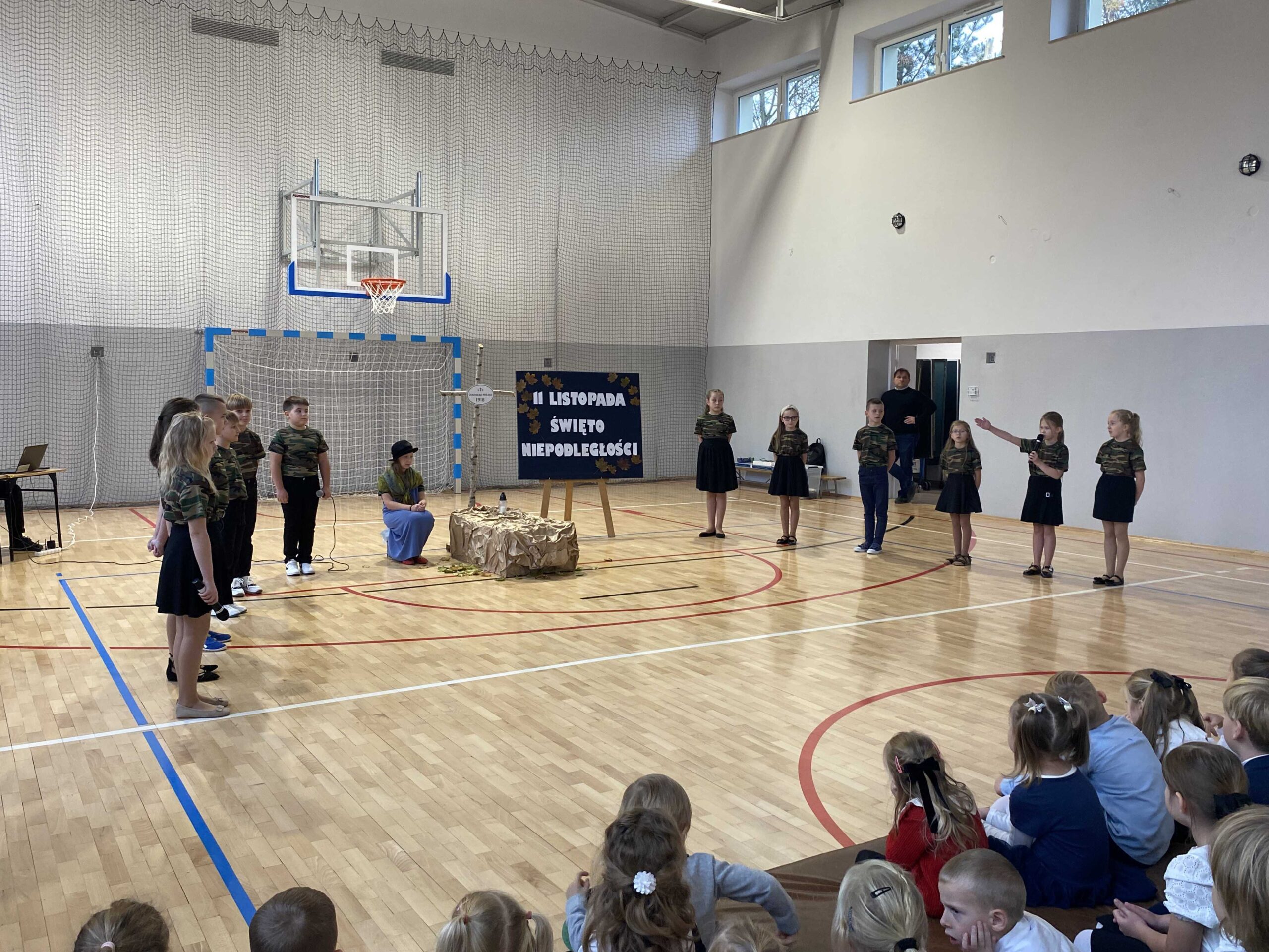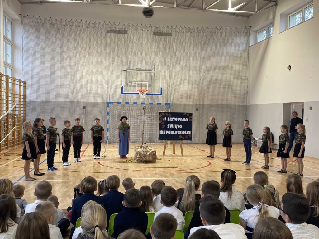Uczniowie klasy III pięknie słowem i pieśnią uczciły 106. rocznicę odzyskania przez Polskę niepodległości. Warto również podkreślić fantastyczne wykonanie piosenki „Tu wszędzie jest moja ojczyzna” przez uczennice klasy VI: Zuzannę Cibę oraz Zuzannę Róg.
