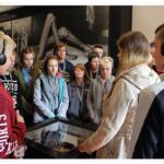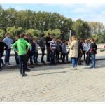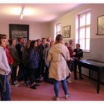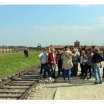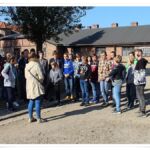 Po przekroczeniu głównej bramy obozu ze słynnym napisem „Arbeit macht frei” uczniowie zwiedzili pierwszą część muzeum. Poznali okoliczności powstania obozu, zobaczyli ruiny, autentyczne drogi, rampy, ogrodzenia, krematorium , komory gazowe, piece krematoryjne oraz archiwalia (m.in. walizki, buty i przedmioty codziennego użytku). Całość uzupełniały przejmujące fotografie, rysunki, w tym te wykonane przez więźniów obozu oraz ekspozycje multimedialne.