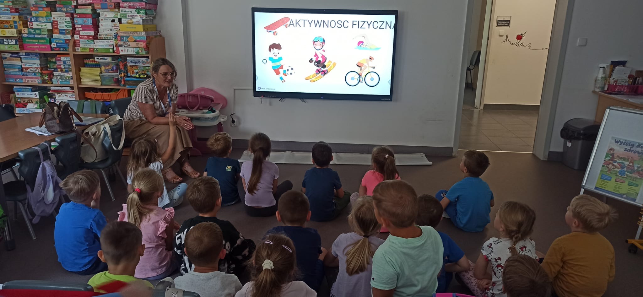 Natomiast dzieci 5 i 6 letnie uczestniczyły w zajęcia w ramach kampanii „Wyścig do zdrowia”. Przedszkolaki z entuzjazmem zaangażowały się w pogadankę na temat zdrowego stylu życia, a także w ciekawą grę ruchową. W bardzo przystępny i serdeczny sposób opowiedziano najmłodszym o tym, jak ważne jest zdrowe odżywianie oraz codzienna aktywność fizyczna.