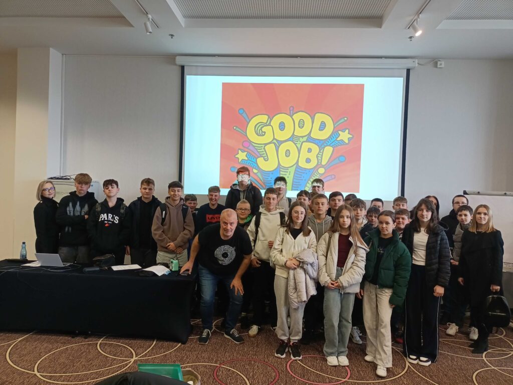 Wszyscy chętnie i aktywnie uczestniczyli w zajęciach. Prowadzący znakomicie dostosował język dla grupy wiekowej oraz w bardzo ciekawy i momentami zabawny sposób przeprowadził warsztaty.