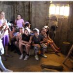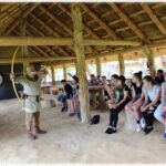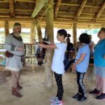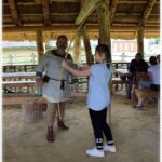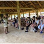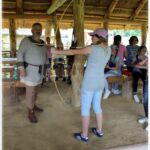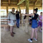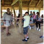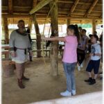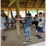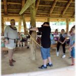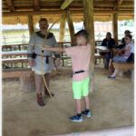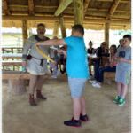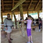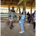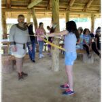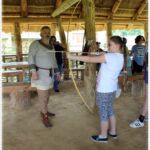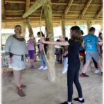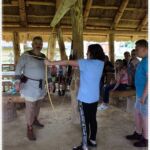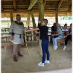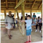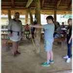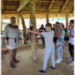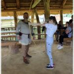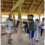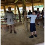 Zajęcia podzielone były na dwie części (na dwie grupy podzieleni zostali również uczestnicy wyjazdu). Podczas, gdy jedna grupa zwiedzała teren Skansenu, druga „rywalizowała” ze sobą podczas zajęć łuczniczych. Następnie grupy zamieniły się miejscami.