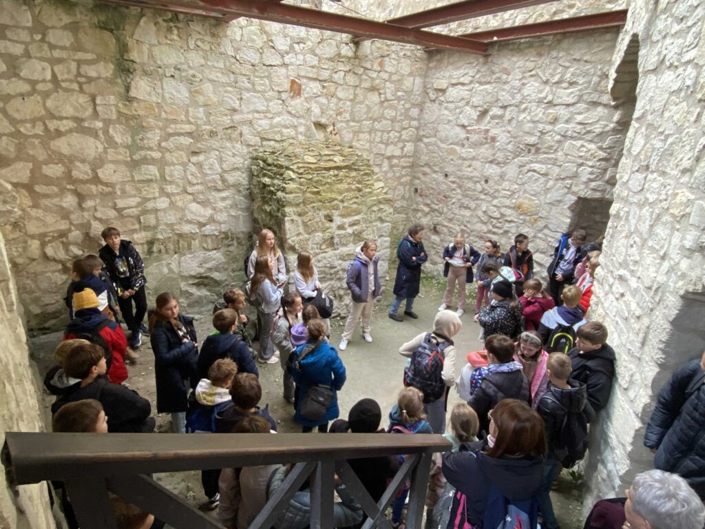 7 października br. uczniowie klas 4-6 ze szkół z Nockowej i Wiercan udali się na wspólny wyjazd do Kazimierza Dolnego nad Wisłą, gdzie wraz z przewodnikiem zwiedzili KAZIMIERZOWSKI RYNEK – turystyczne serce miasteczka, gdzie zachowała się charakterystyczna architektura (w tym KAMIENICE PRZYBYŁÓW o manierystycznym wystroju z ok. 1615 należące do braci Przybyłów). Na Rynku uwagę przykuwają charakterystyczne podcienie oraz drewniana studnia. Kolejnym etapem wycieczki była wizyta na Górze Zamkowej – wzniesienie na prawym brzegu Wisły, gdzie znajdują się RUINY ZAMKU KAZIMIERZA WIELKIEGO oraz BASZTA ZAMKOWA.