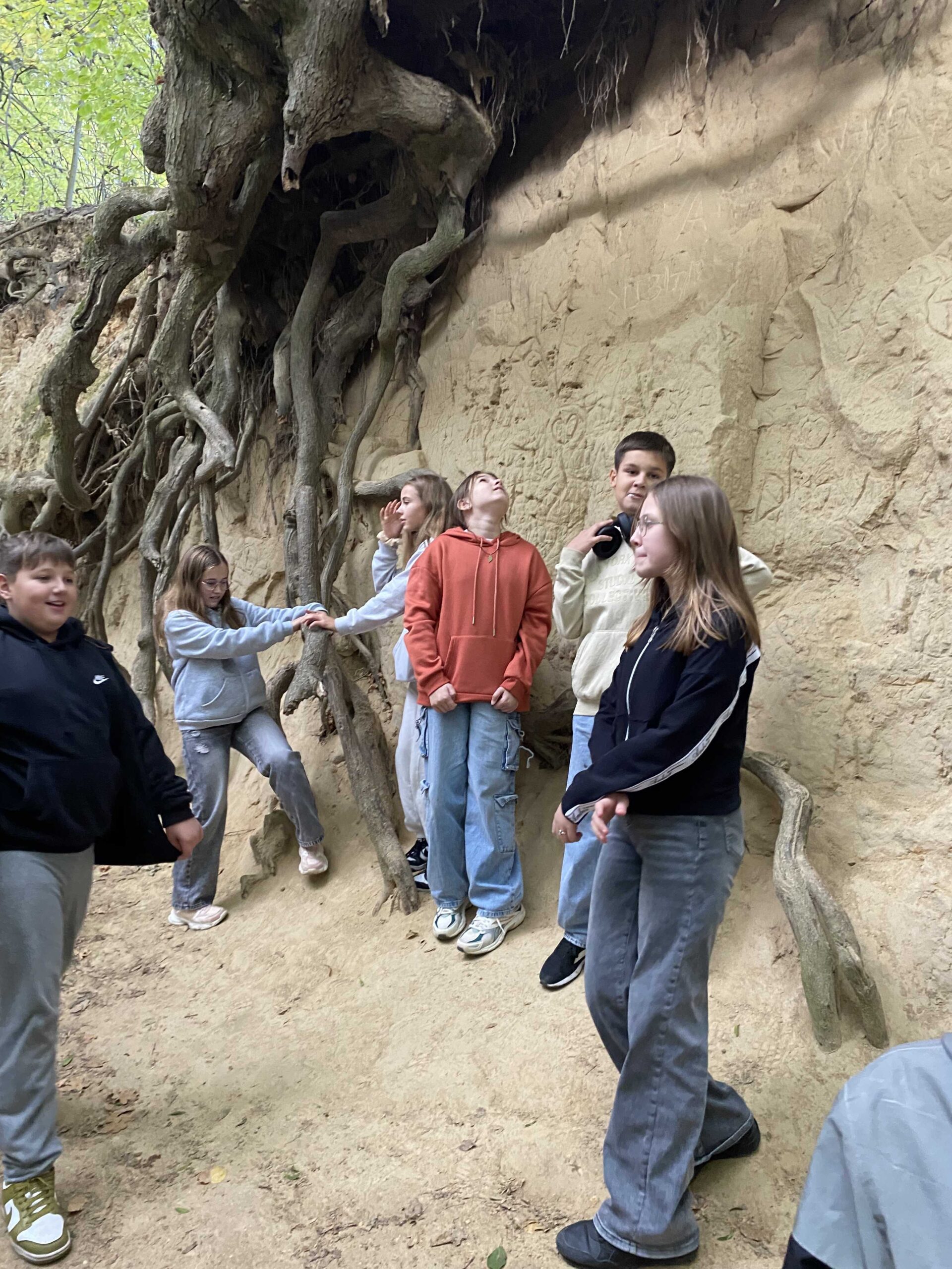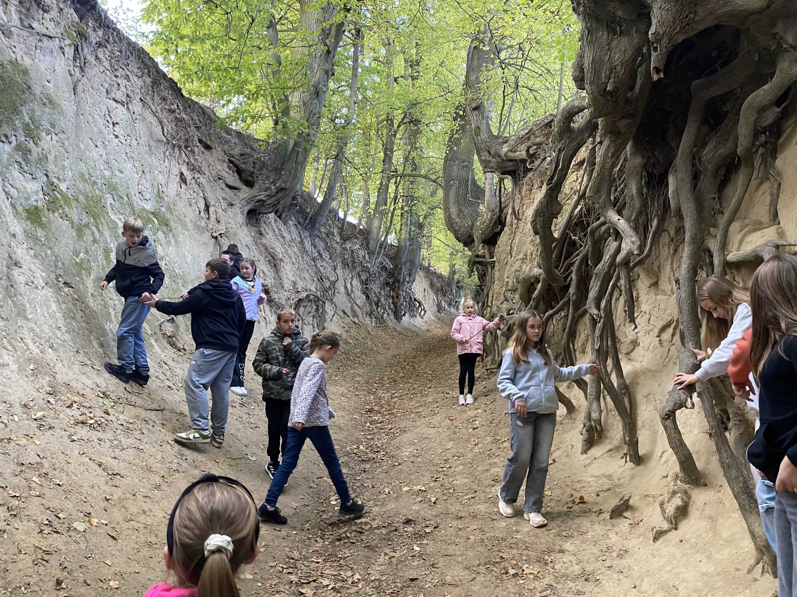 Na koniec było przejście KORZENIOWYM WĄWOZEM, wyżłobionym przez erozyjną działalność wody w lessowej skale. Trzeba przyznać, że dla dzieci okazało się to być największą atrakcją 😉