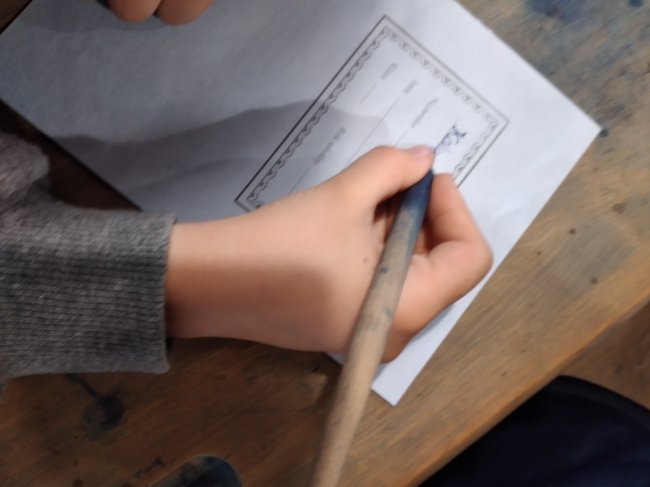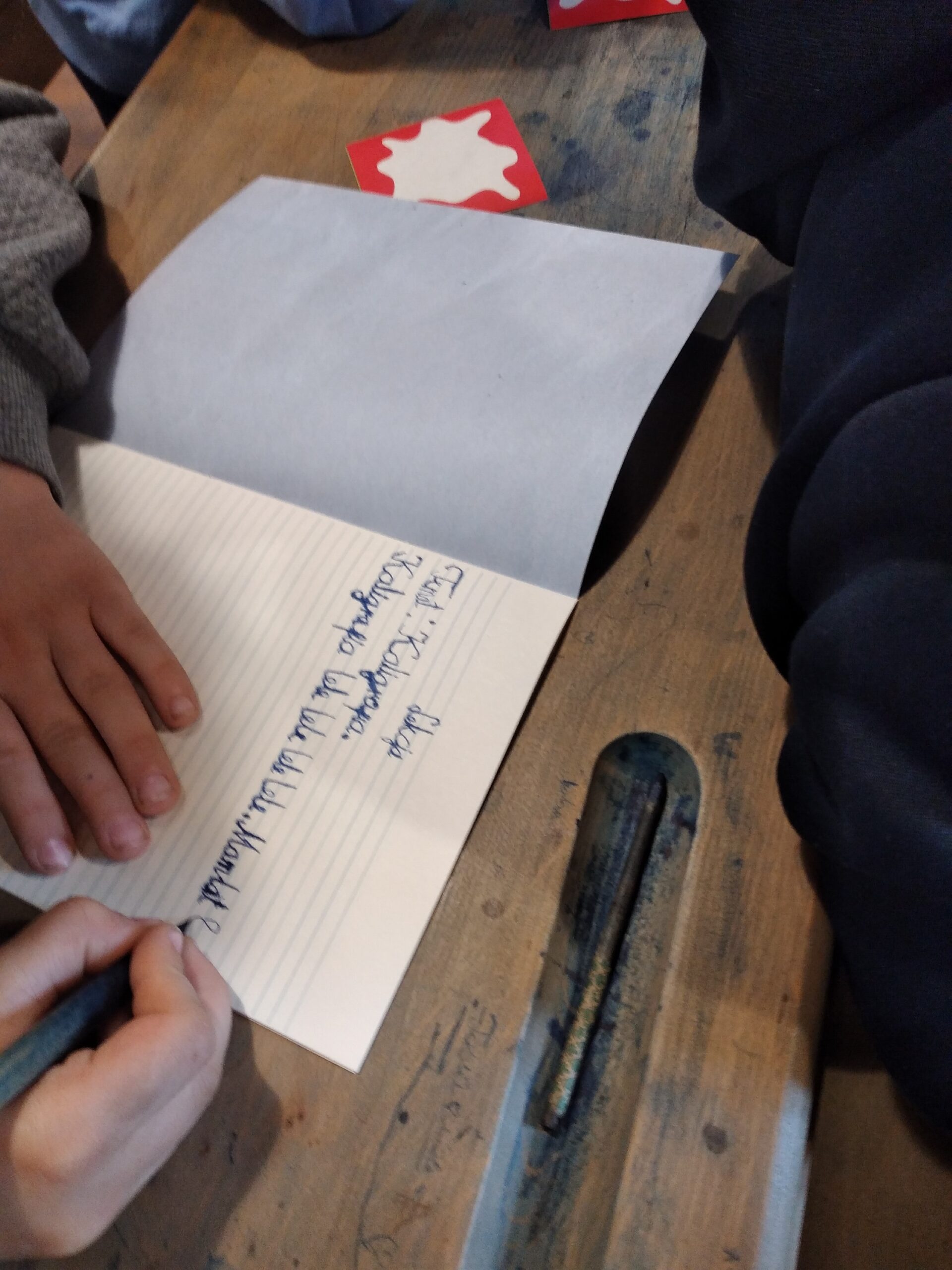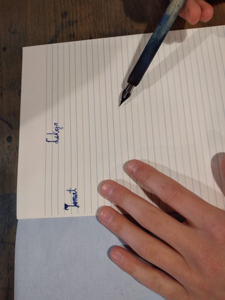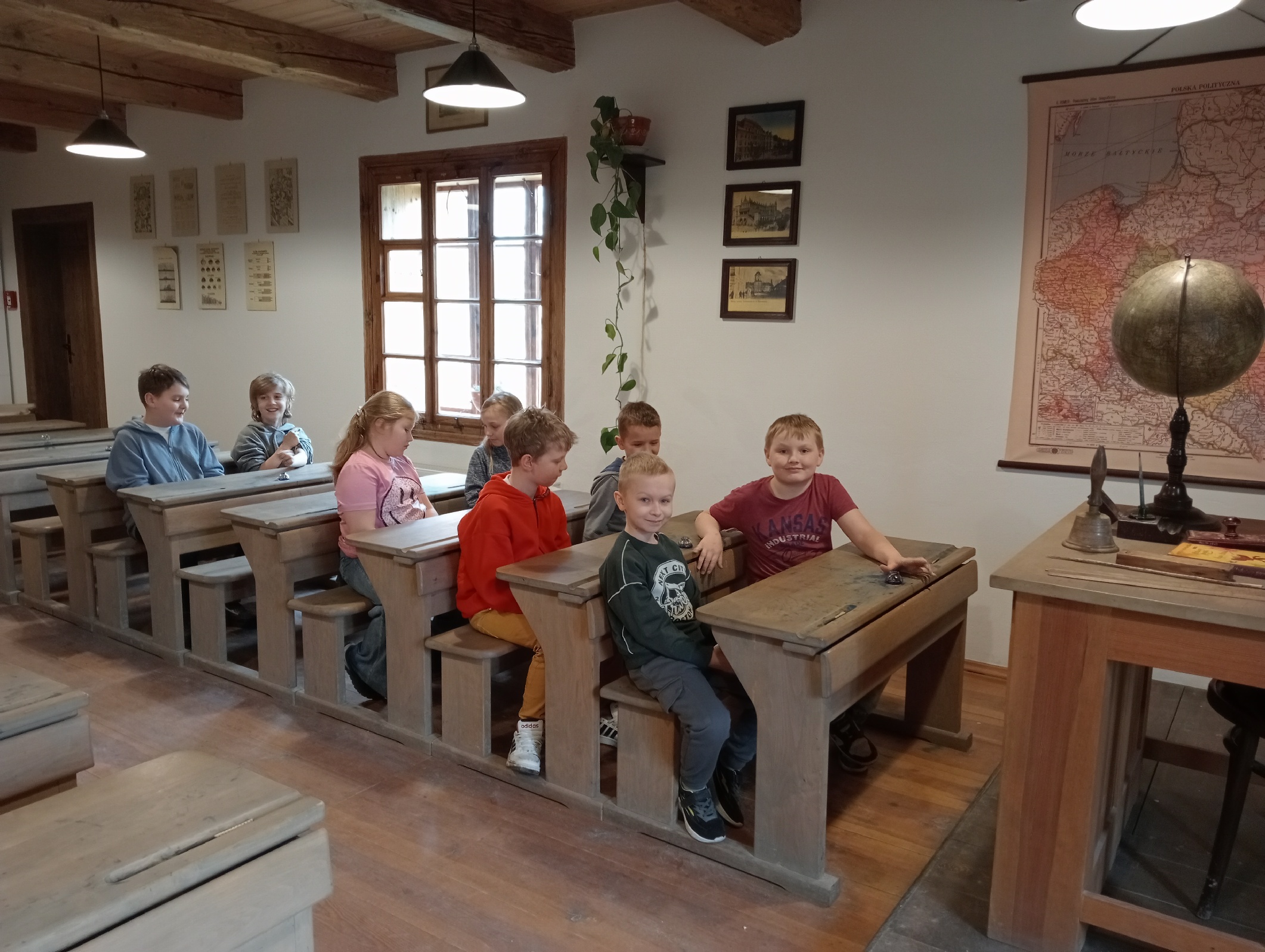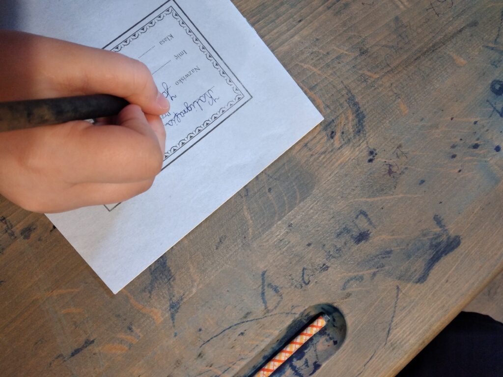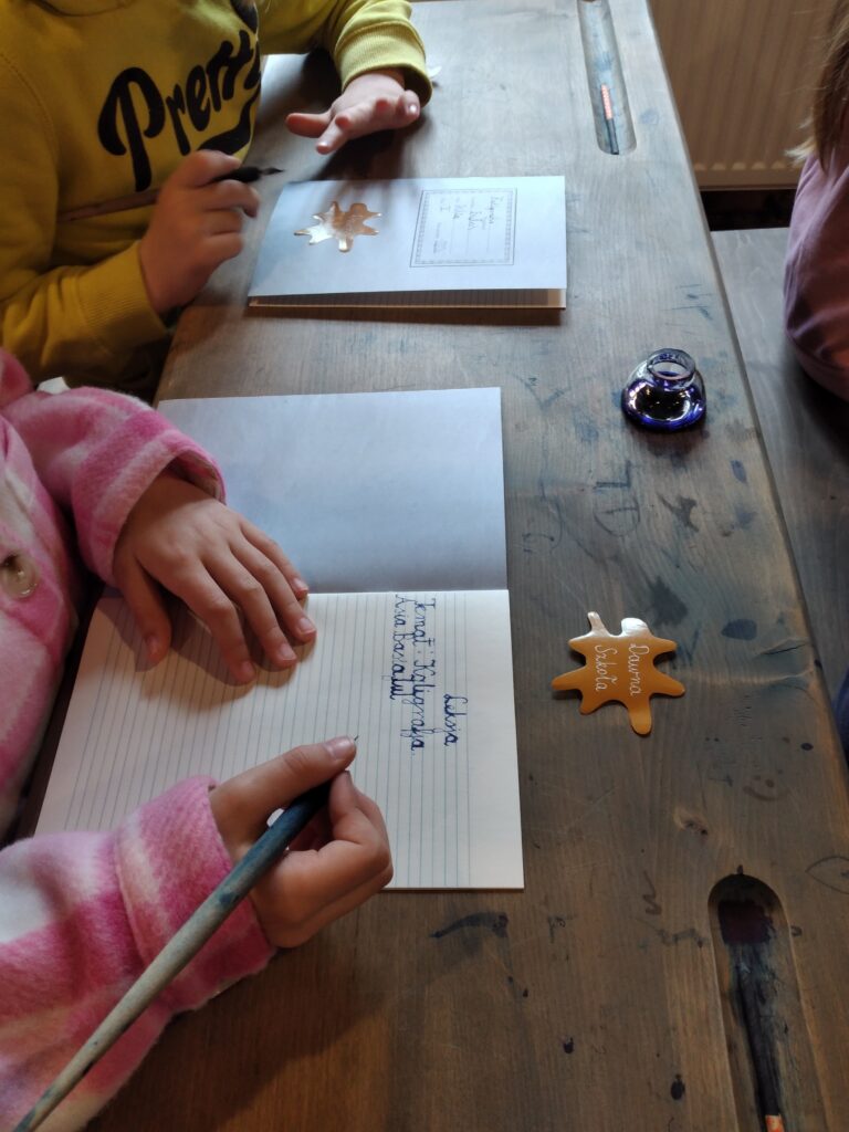Dzieciom bardzo spodobały się ławki, chociaż trochę ciasne, globus, plansze z ilustracjami utrwalającymi podstawową wiedzę. Nie lada wyzwaniem okazała się próba pisania „jak za dawnych lat”. Uczniowie wykazali się sporym zaangażowaniem, aby efekty były zadowalające.