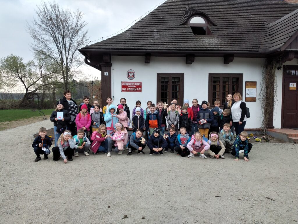 W czwartek 16 kwietnia klasy 1- 3 naszej szkoły wraz z nauczycielkami: p. Esterą, p. Bożeną, p. Danutą i p. Haliną pojechały na wycieczkę do Muzeum Kultury Ludowej w Kolbuszowej. Jest to skansen, który prezentuje Kulturę Rzeszowiaków i Lasowiaków. Znajdują się tu liczne chałupy i budynki gospodarcze oraz wiatraki, kościół, plebania, szkoła, karczma- wiele atrakcyjnych obiektów. Dzieci zwiedzały wybrane budynki i z uwagą słuchały ciekawych opowiadań pani przewodnik.