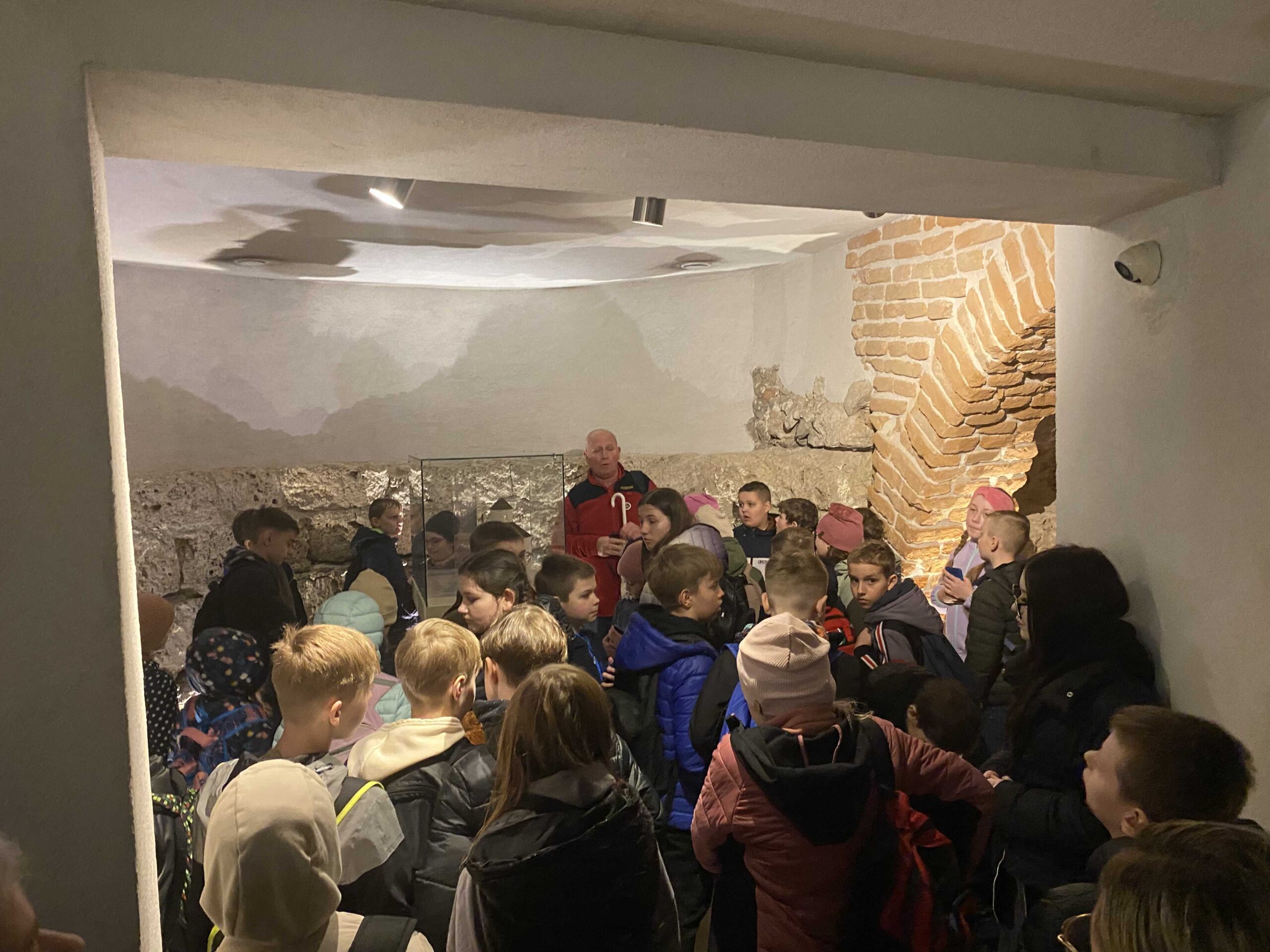 Kontynuując spacer uczniowie poznali również wielokulturowość religijną Przemyśla poprzez odwiedzenie BAZYLIKI GREKO-KATOLICKIEJ PW. ŚW. JANA CHRZCICIELA oraz BAZYLIKI ARCHIKATEDRALNEJ RZYMSKO-KATOLICKIEJ PW. ŚW. JANA CHRZCICIELA I NAJŚWIĘTSZEJ MARII PANNY, gdzie w podziemiach mogli poznać historię katedry. Po wyjściu z katedry przewodnik zaprowadził uczniów na przemyski RYNEK, gdzie nie zabrakło zdjęć przy pomniku Wojaka Szwejka oraz fontannie z niedźwiedziem – symbolem miasta.