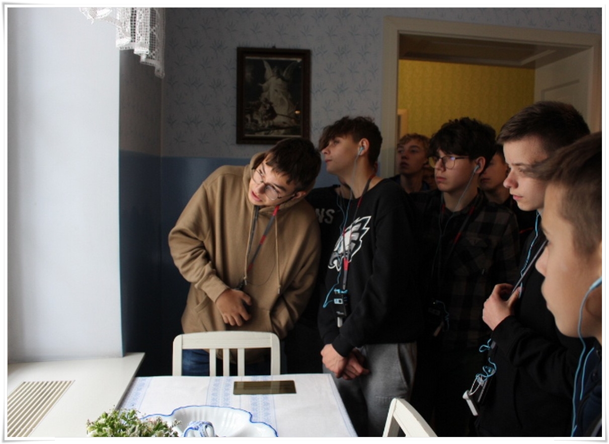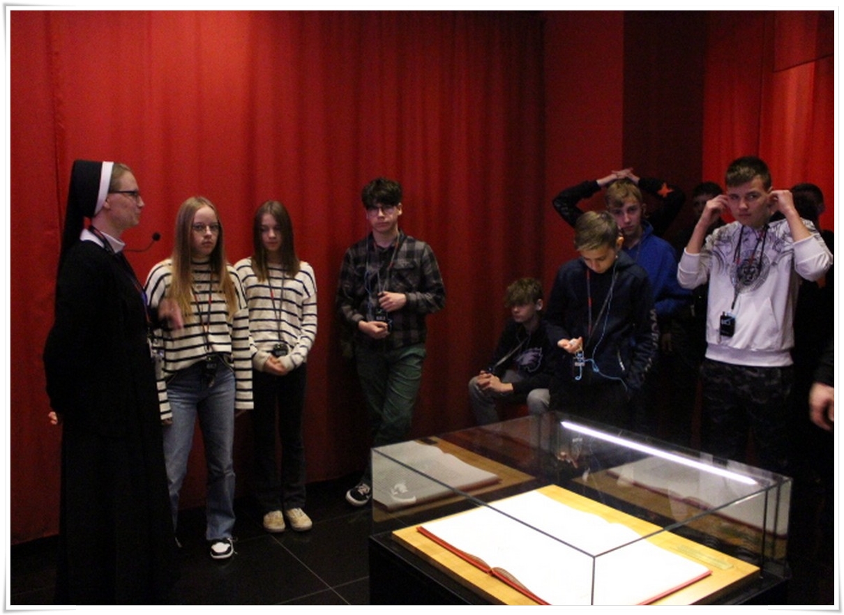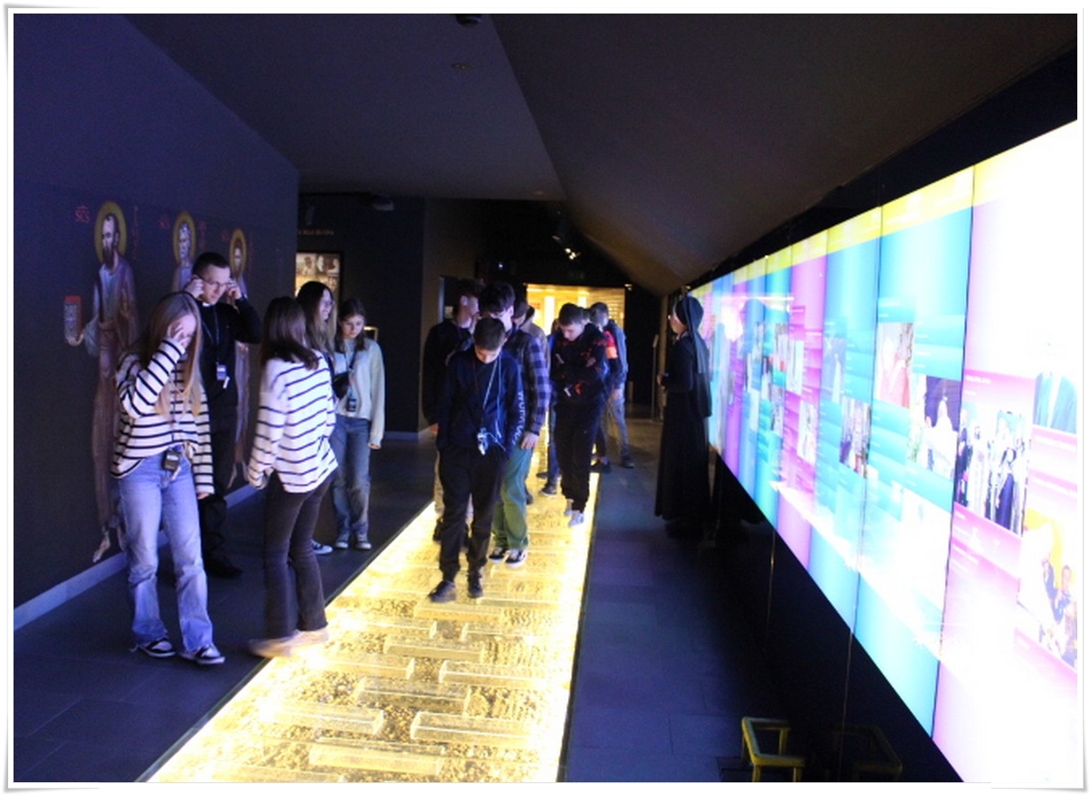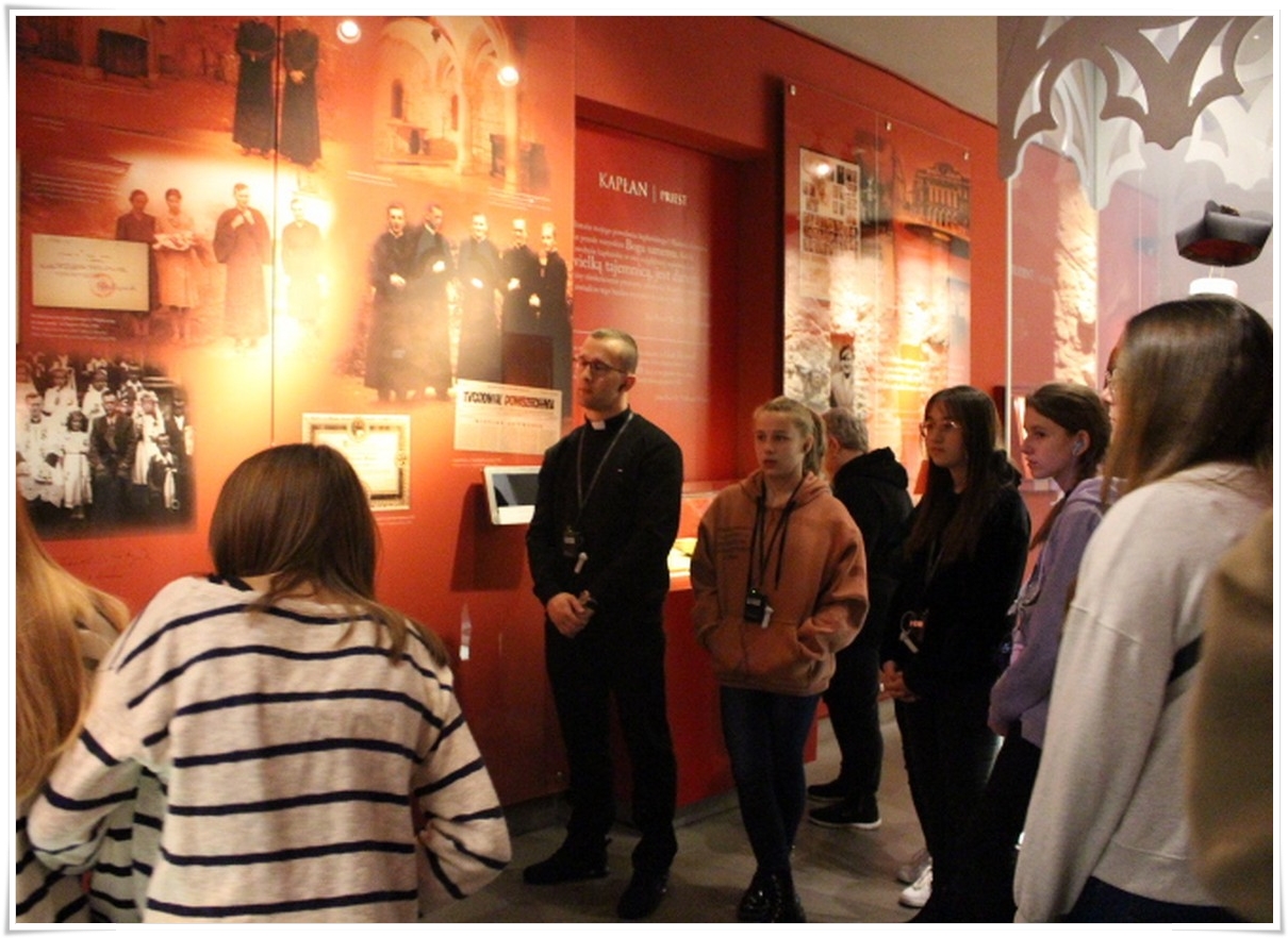 Pierwszym punktem wyjazdu była wizyta w Muzeum Dom Rodzinny Jana Pawła II w Wadowicach, gdzie uczniowie mogli poznać historię życia naszego wielkiego Rodaka – Karola Wojtyły – Papieża Jana Pawła II. W Wadowicach spędził całe swe dzieciństwo oraz młodość. Zwiedzający mogli zobaczyć oryginalne pamiątki lub ich repliki z okresu, gdy w tym miejscu mieszkał młody Karol Wojtyła. Zgromadzono tu również wiele rzeczy związanych z późniejszym jego życiem, zarówno, gdy był biskupem, arcybiskupem, kardynałem oraz papieżem. Wizyta w tym muzeum to swego rodzaju podróż przez ponad 80 lat historii XX wieku, której częścią był Papież Polak. Po wyjściu z muzeum uczestnicy wycieczki udali się do wadowickiej Bazyliki, aby pomodlić się przy chrzcielnicy, przy której ochrzczony został Karol Wojtyła.
