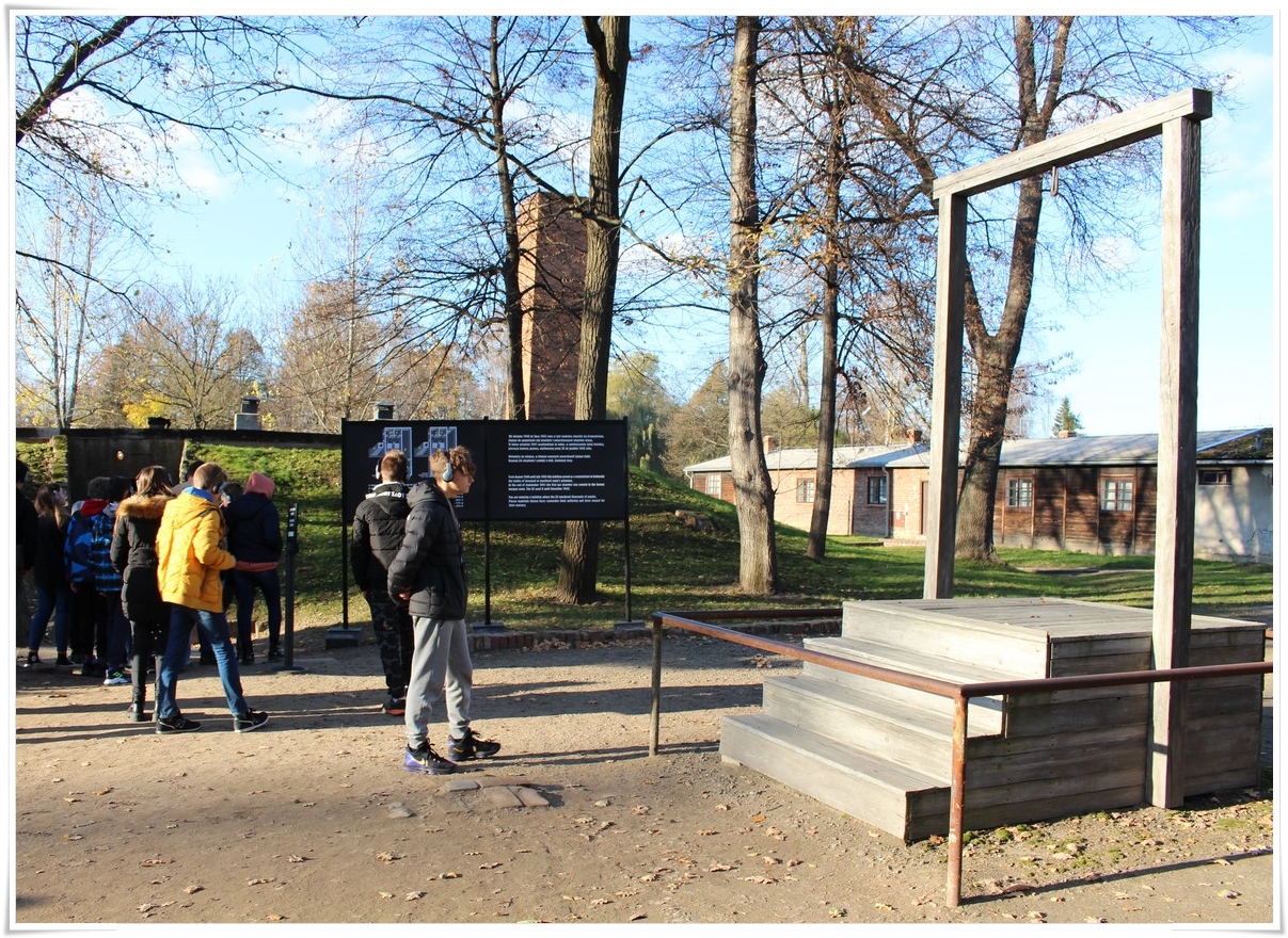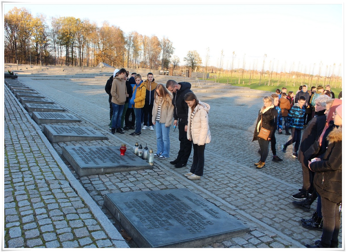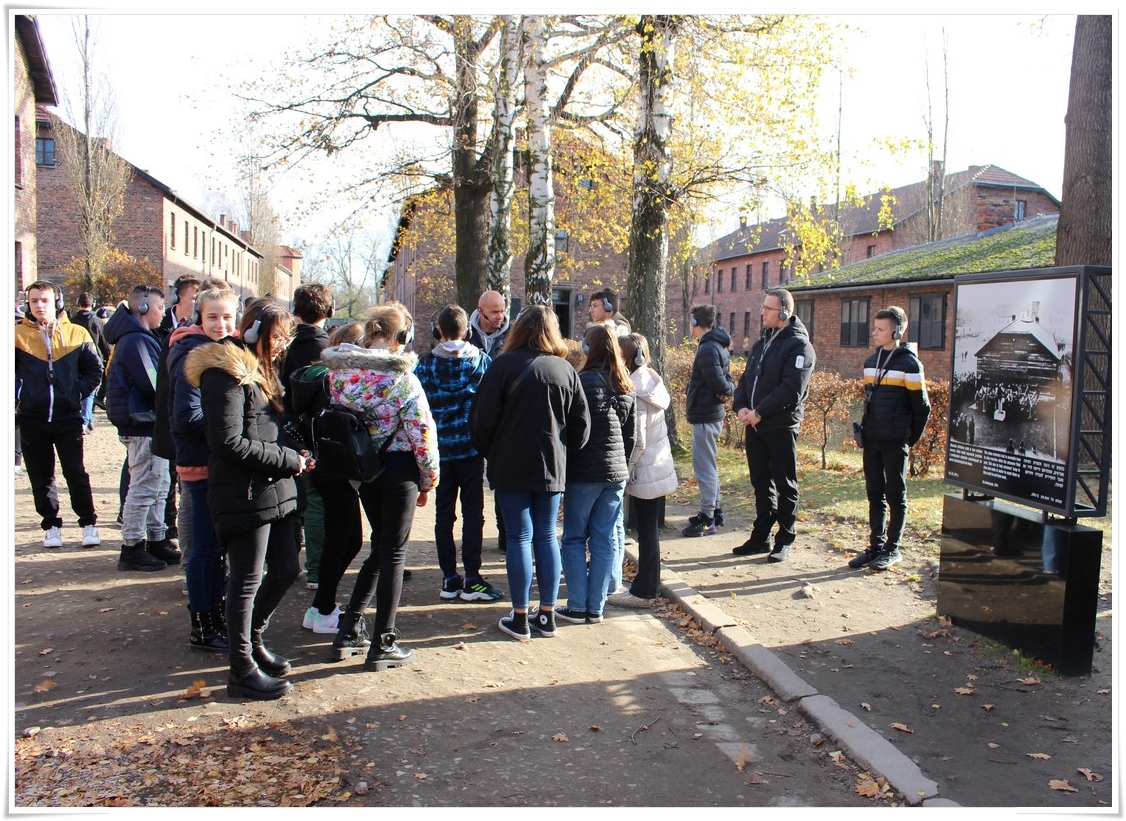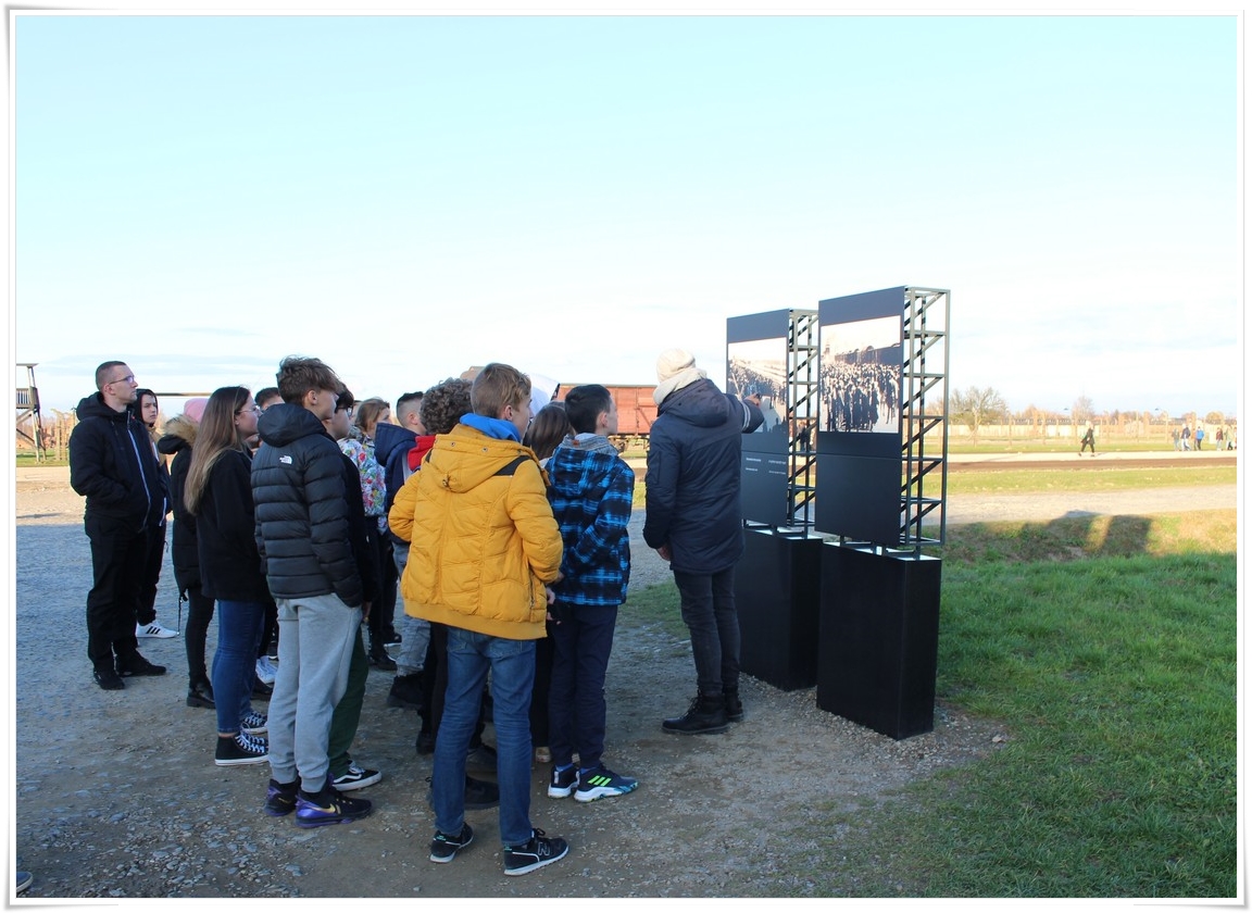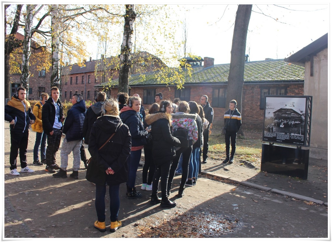 Druga część wycieczki to niezwykle ważna lekcja historii – wizyta w Muzeum Auschwitz Birkenau. Jest to miejsce pamięci, które każdy powinien zobaczyć, aby poznać jak okrutny był czas II wojny światowej oraz co potrafił człowiek zrobić drugiemu człowiekowi. Zwiedzanie rozpoczyna się od przejścia przez bramę z napisem „Arbacht macht frei”, która uzmysławia tak naprawdę wtedy, w jakim miejscu się znajdujemy. Podczas wędrówki po terenie byłego obozu przewodnik opowiada o losach ludzi, którzy tu trafili. Przejmująca jest wizyta w jedynej zachowanej na terenie obozu komorze gazowej oraz krematorium. W drugiej części zwiedzania uczestnicy udali się do sąsiedniej Brzezinki, gdzie mogli zobaczyć w jakich warunkach byli przywożeni do obozu więźniowie oraz w jakich barakach mieszkali. Dzięki tego typu wyjazdom mamy okazję uświadomić kolejnym młodym pokoleniom, czym kończy się dopuszczenie do władzy szaleńców, którzy w imię osobistych, często szalonych planów uciekają się do takich okrucieństw.