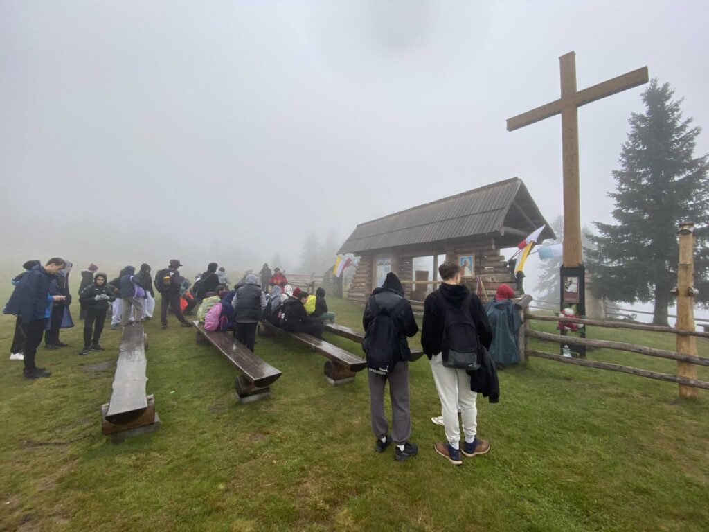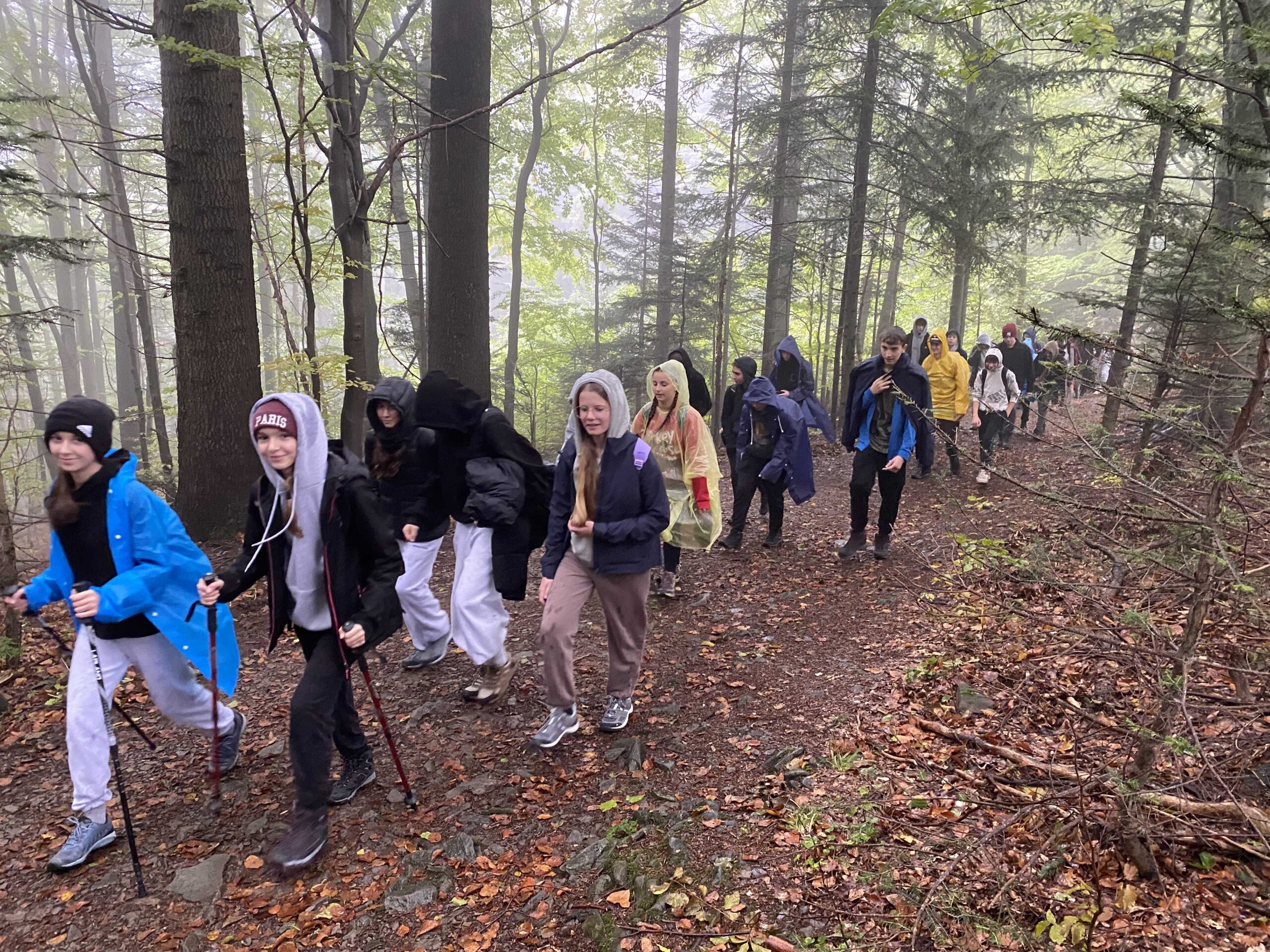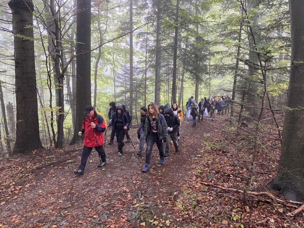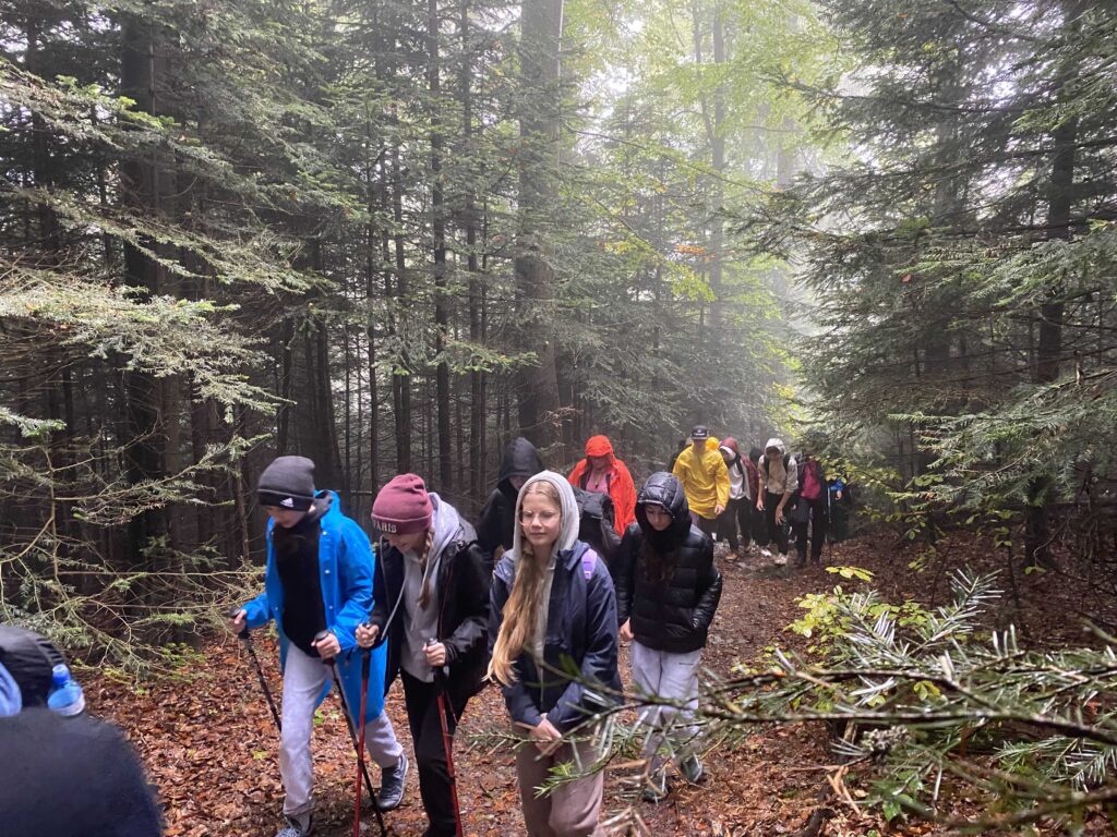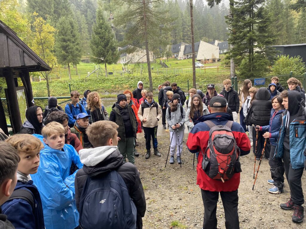 9 października br. uczniowie ze szkół z Nockowej, Iwierzyc i Wiercan wybrali się na wycieczkę górską w Gorce, aby zdobyć najwyższy szczy tego pasma – Turbacz (1310 m n.p.m.). Pogoda tego dnia nie napawała optymizmem, ale nie zraziło to nikogo i pod czujnym okiem przewodnika – Aleksandra Dawidziaka ruszyliśmy na szlak z Koninek – przysiółka Poręby Wielkiej. Wędrówka wiodła przez Suchy Groń (1043 m n.p.m.) oraz czoło Turbacza (1259 m n.p.m.), skąd już bardzo blisko na sam szczyt Turbacza, gdzie aura była już wyraźnie niekorzystna i nie pozwoliła na dłuższe delektowanie się osiągniętym celem. Młodzi turyści zeszli do znajdującego się pod Turbaczem Schroniska Górskiego PTTK im. Władysława Orkana, gdzie była dłuższa chwila na odpoczynek.