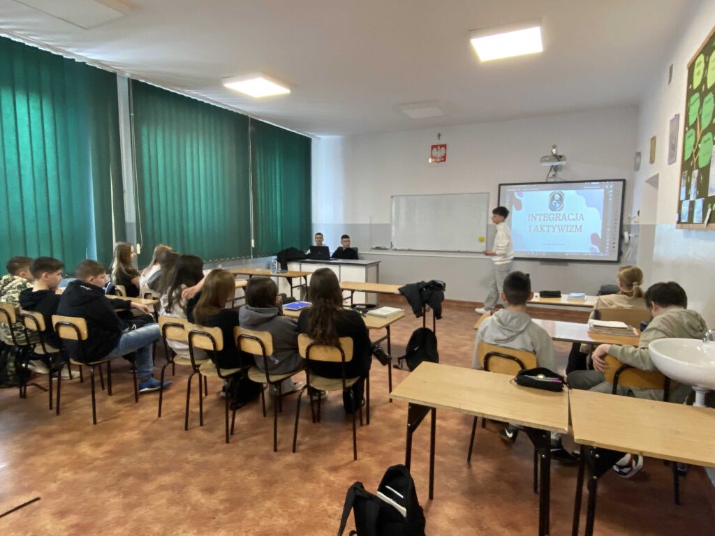 3 lutego br. Absolwenci naszej szkoły: Szymon CIBA, Miłosz KŁĘCZEK oraz Mikołaj SIEWIERSKI poprowadzili zajęcia pt. „INTEGRACJA I AKTYWIZM” w ramach projektu „IntegrAkcja”.